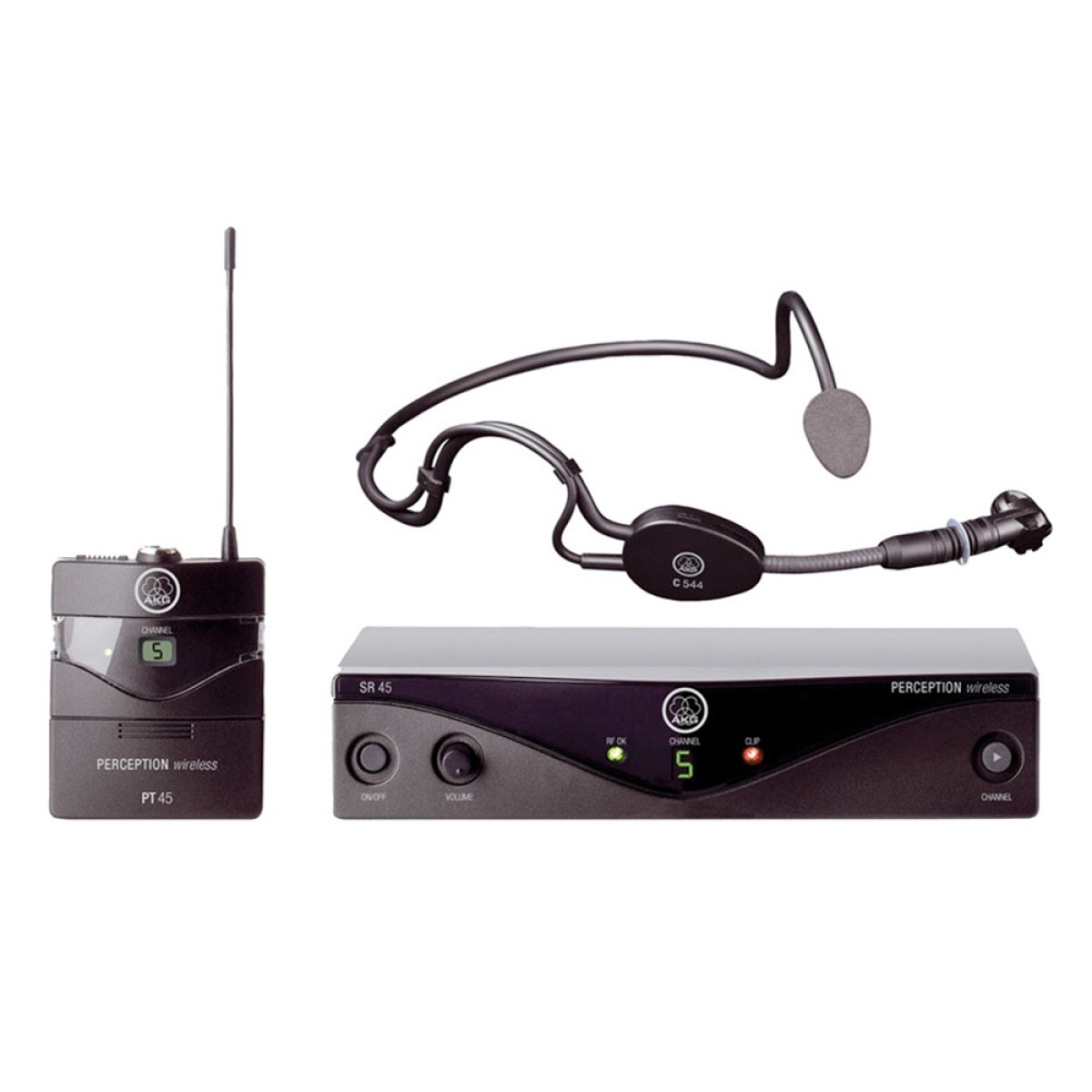Ασύρματο σύστημα beltpack 5 συχνοτήτων UHF, diversity, με εσωτερικές κεραίες στον δέκτη. Περιλαμβάνει τον πομπό belt pack PT 45, δεκτη SR 45 και το πυκνωτικό μικρόφωνο κεφαλής C 544L. Κατάλληλο για χρήση σε γυμναστές, ομιλητές ή όπου απαιτείται ασύρματο σύστημα με μικρόφωνο κεφαλής. Διάρκεια μπαταρίας έως & 8 ώρες με μια μπαταρία 1.5V AA, δυνατότητα έως & οκτώ (8) καναλιών / μπάντα, σε πολυκαναλική ταυτόχρονη λειτουργία. ΧLR & 1/4 jack έξοδοι.