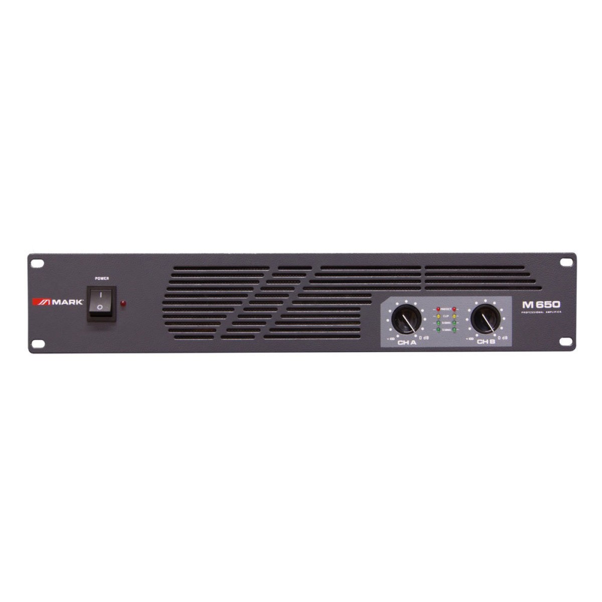 M 650 is a 320 W @ 4 Ohm 2-channel professional audio amplifier built in a 2-rack unit metal enclosure. It has balanced inputs in XLR3 format and 1/4 "TRS jack and outputs with XLN4 and Binding Post connectors. The front panel has a power switch, independent volume controls for each channel, and power, signal, clip and protection indicators.