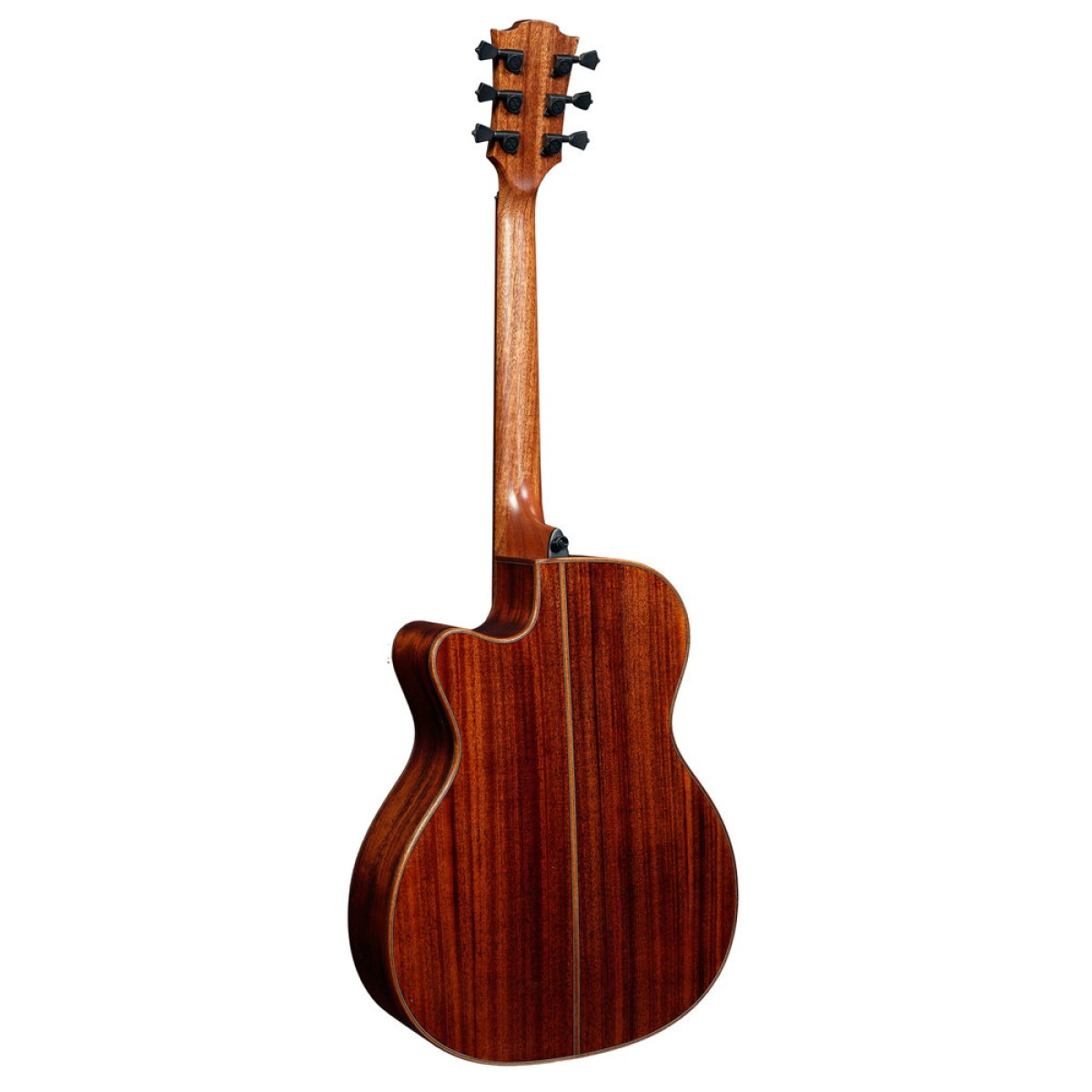 Tramontane T 118 Auditorium Cutaway electroacoustic guitar with Astro-LAG system preamp with tuner. Solid red cedar cap, sides, back and arm made of Dark Brown Khaya, Brownwood fingerboard, black metal parts, High Gloss Brown Sunburst finish.