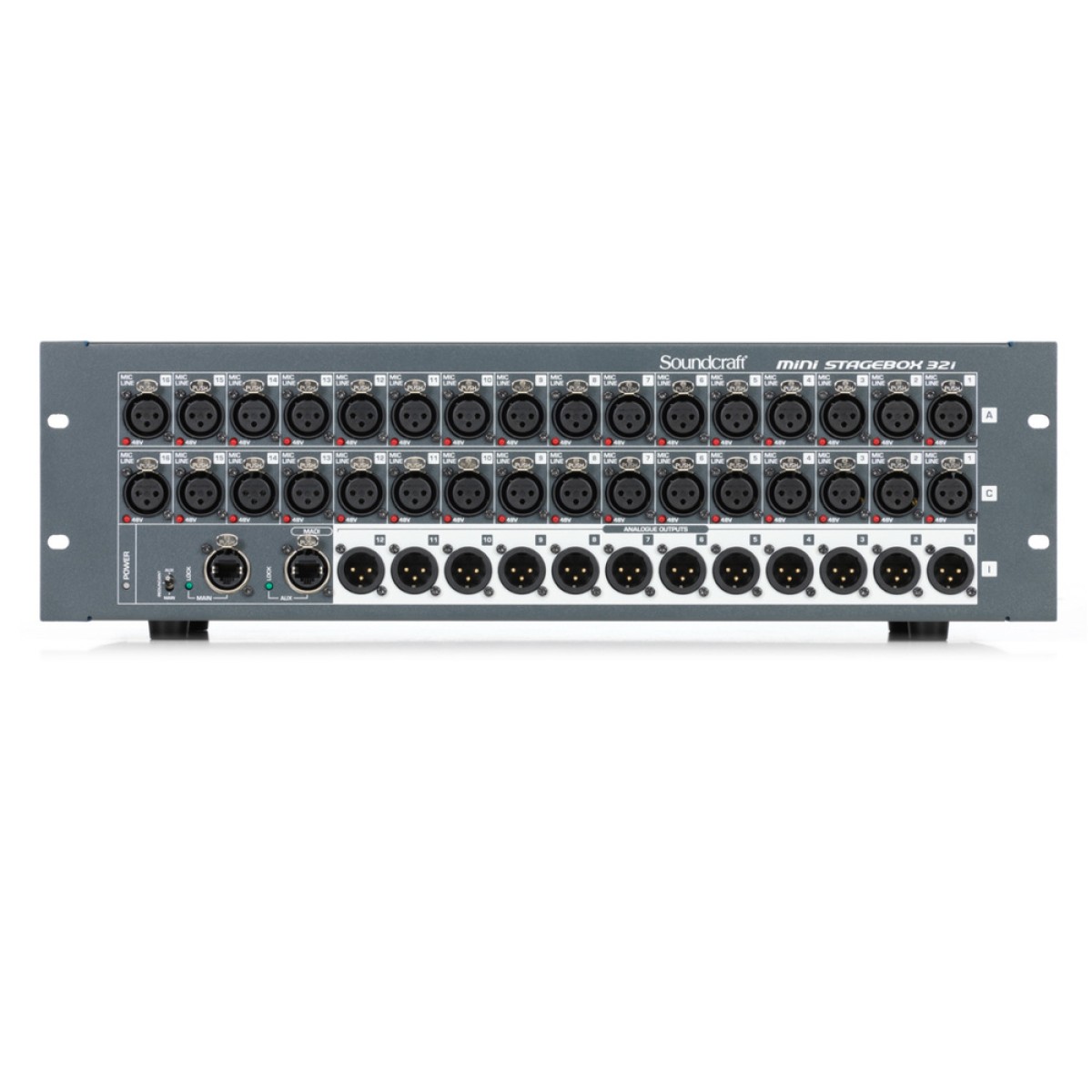 Soundcraft Mini Stagebox 32i combine high-quality components with a streamlined design, making it easy to add multiple channels of remote-controlled I/O to your Si-series mixing console. The Studer-designed mic preamps provide exceptional sound quality, while the compact form factor offers easy transport and fast configuration. Ideal for live engineers, houses of worship, bands, club owners and corporate installations, Soundcraft Mini Stageboxes allow you to replace heavy, expensive analog snakes with a single RJ45 Cat5 style Ethernet cable.
