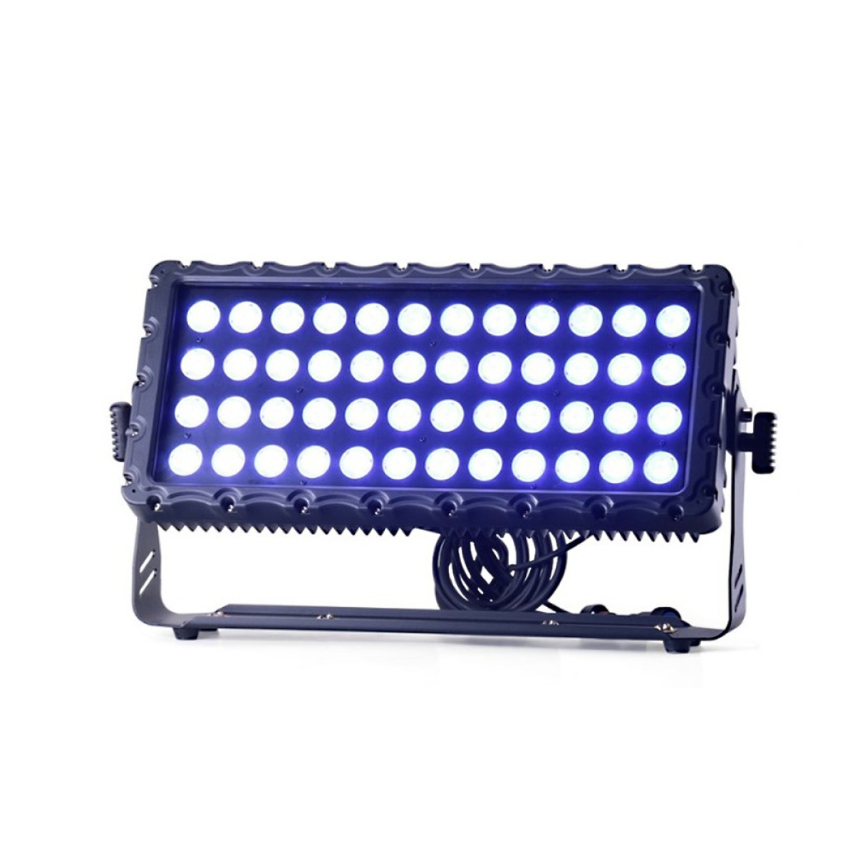 LED color washer IP65, 48 Full color RGBW LED’s x10W. 60° angle, DMX 512 control 4/8 channels), Auto, Master/Slave & Sound.Dimmer, Strobe 0-100% linear. Black colored chassis. IP65 I/O for DMX and power, Power supply: 110-250V, 550W. Dimentions: 55 x16 x 25cm. Weight: 15,5Kg.
