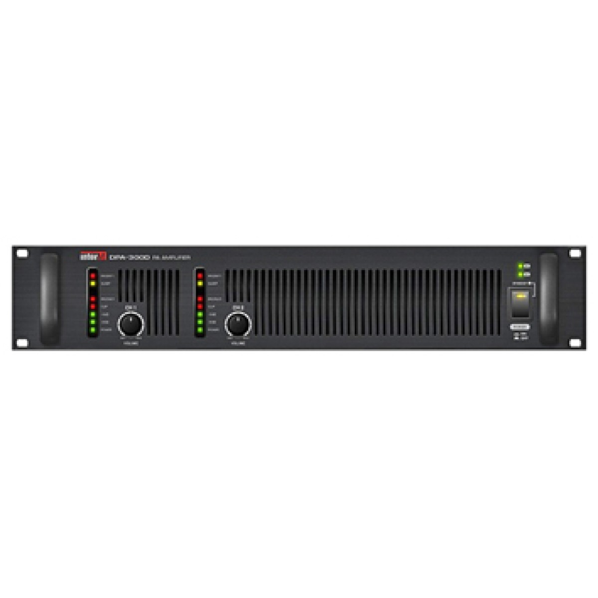 2 channel digital (Class D) amplifier with switching power supply 300W/70V/100V. Protection against overheating, overcurrent and short circuit output. Features & priority entry program (program override) for message playback emergency. Highpass filter OFF/200Hz/400Hz. Remote control function ON / OFF. Power Supply DC 24V, AC 220 ~ 240V 50/60Hz.