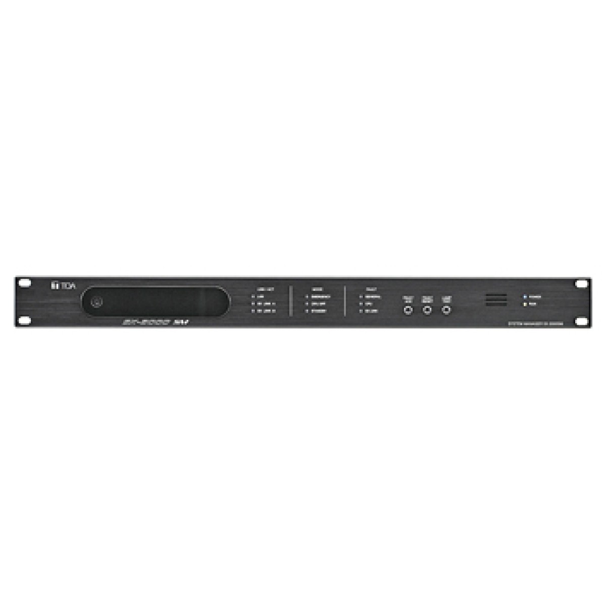 The SX-2000SM System Manager is designed for use in TOA's Matrix System and can be mounted in an EIA Standard component rack (1-unit size). It can be used in combination with an optional audio input unit audio output unit and remote microphone of the SX-2000 Series to make up a complete matrix system and can perform audio signal routing and priority control for the entire system. The SX-2000SM itself is equipped with 8 control inputs, 8 control outputs, failure status outputs, failure data inputs/switches, access indicators, mode indicators and failure indicators enabling a wide range of controls and status monitoring. Control input line failure can be detected by connecting resistors to its line. The SX-2000SM has a function to supply a stabilized 24 V DC. Each control can be performed by way of a CF card inserted into the SX-2000SM unit. Operations of the entire system can be recorded and their contents stored on a CF card as an operation log. The SX-2000SM also features two power inputs making possible the creation of a dual-redundant power system. Equipped with two channels of interfaces for connecting to the Emergency Power Supply units, making it possible to configure the system to operate during a power failure.