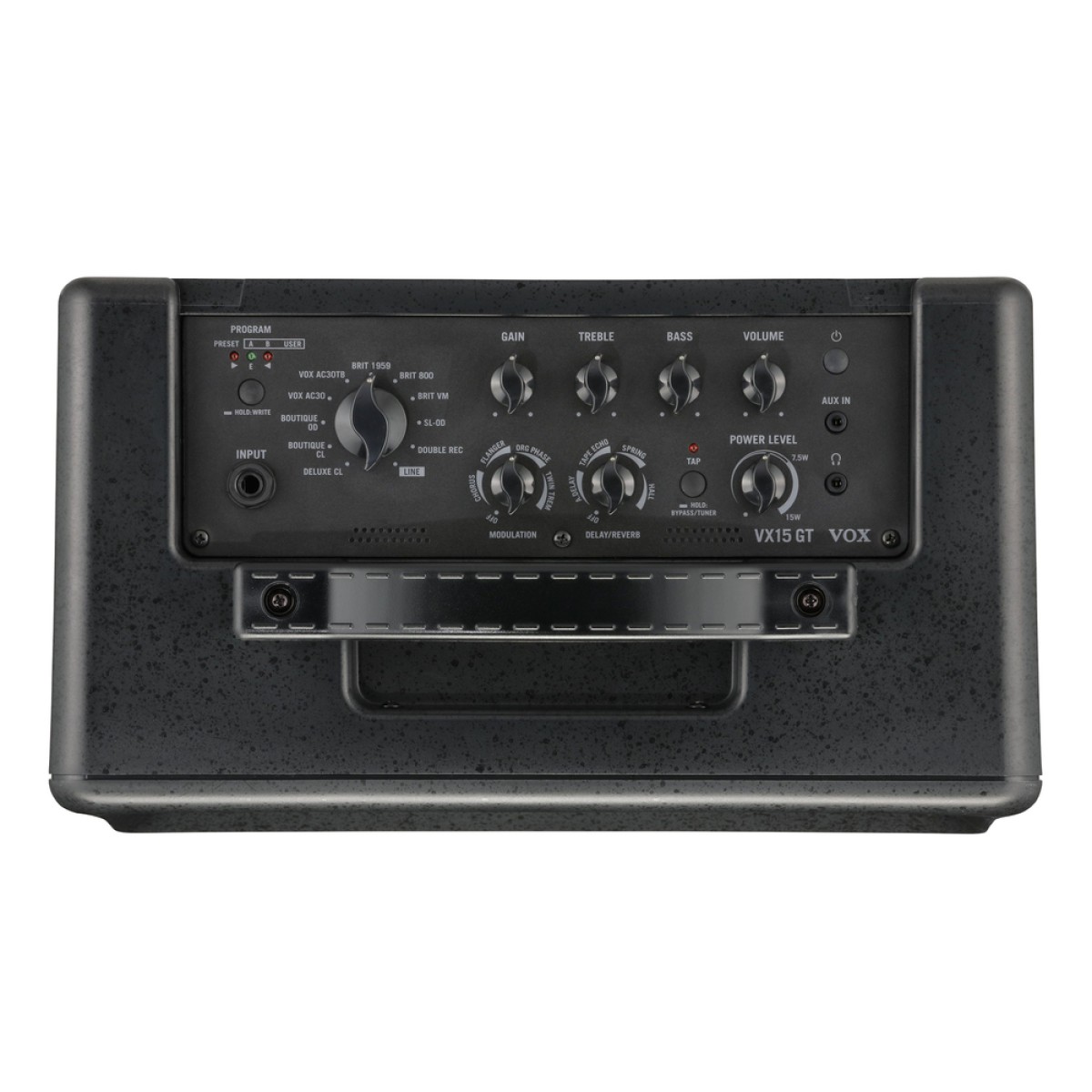 Ενισχυτής κιθάρας Modeling COMBO 15W, λυχνία Nutube 6P1, 11 μοντέλα ενισχυτών & 8 ψηφιακά εφέ (4 modulation + 4 reverb/delay), 11 ήχοι song preset & 2 user, ειδικής σχεδίασης μεγάφωνο 6,5" VOX, έξοδος ακουστικών, είσοδος Aux in, είσοδος ποδοδιακόπτη (optional), top panel controls, βάρος 3,8 Kgr, περιλαμβάνεται τροφοδοτικό λειτουργίας.