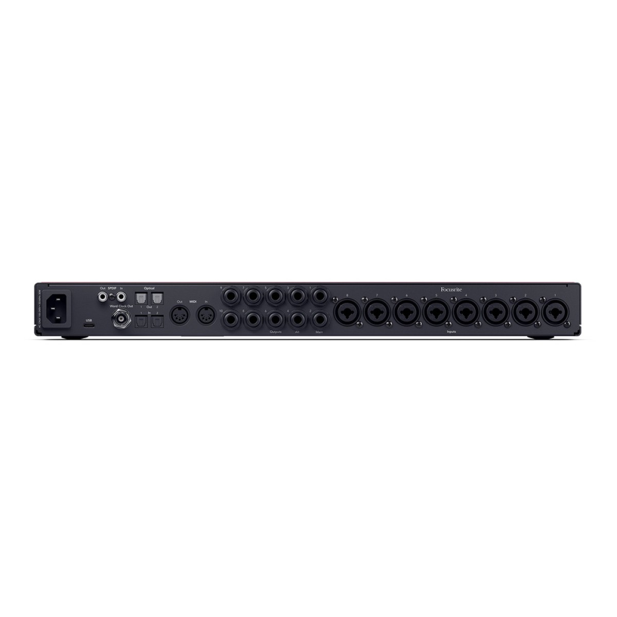 Υψηλής ποιότητας 24-bit/192kHz USB (TypeC) audio interface (4th Generation) 24in/28out. Είσοδοι: 8 Mic Pre Amp/ 2 Instr με Combo βύσματα και βελτιωμένες προενισχύσεις της Focusrite με gain range στα 69dB, 16 κανάλια ψηφιακά μέσω ADAT στα 44.1 kHz και 48 kHz, 2 κανάλια ψηφιακά μέσω S/PDIF (κατά την διαδικασία dual ADAT mode για 16 κανάλια μέσω ADAT, οι είσοδοι SPDIF απενεργοποιούνται). Έξοδοι: 10 Line Out (2 main, 2 Alternative, 6 Line), 16 κανάλια ψηφιακά μέσω ADAT, 2 κανάλια ψηφιακά S/PDIF, 2 έξοδοι ακουστικών με νέους ενισχυτές για βέλτιστο αποτέλεσμα με ρυθμιστικά έντασης ανά έξοδο, MIDI I/O με 5-pin DIN βύσμα, Word Clock Out. Περιλαμβάνει Talkback mic ενσωματωμένο.