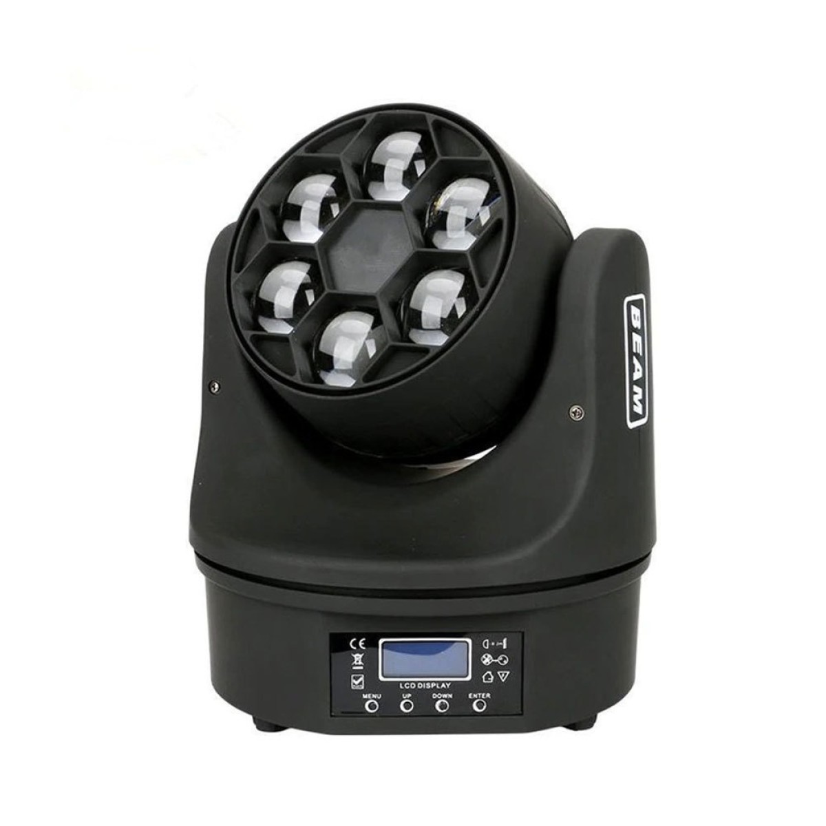 Κινητή κεφαλή LED beam 6x15W RGBW Εύρος κίνησης: Pan 540°/Tilt 270° 16Bit με Dimmer, Strobe 0,5-25/sec° με περιστρεφόμενο φακό. Λειτουργεί με Master/Slave, Music, Auto, DMX512 (XLR 3pin), χρησιμοποιώντας 15 κανάλια. Διαθέτει: LCD screen για διευθυνσιοδότηση και τοπικές ρυθμίσεις. Τροφοδοσία 110-240AC 50/60Hz, κατανάλωση: 120W. Βάρος: 5.5 κιλά. Διαστάσεις: 24x20x17cm. Χρήσεις: Κέντρα διασκέδασης, Συναυλίες, Club, Θέατρα, disco κ.λ.π.