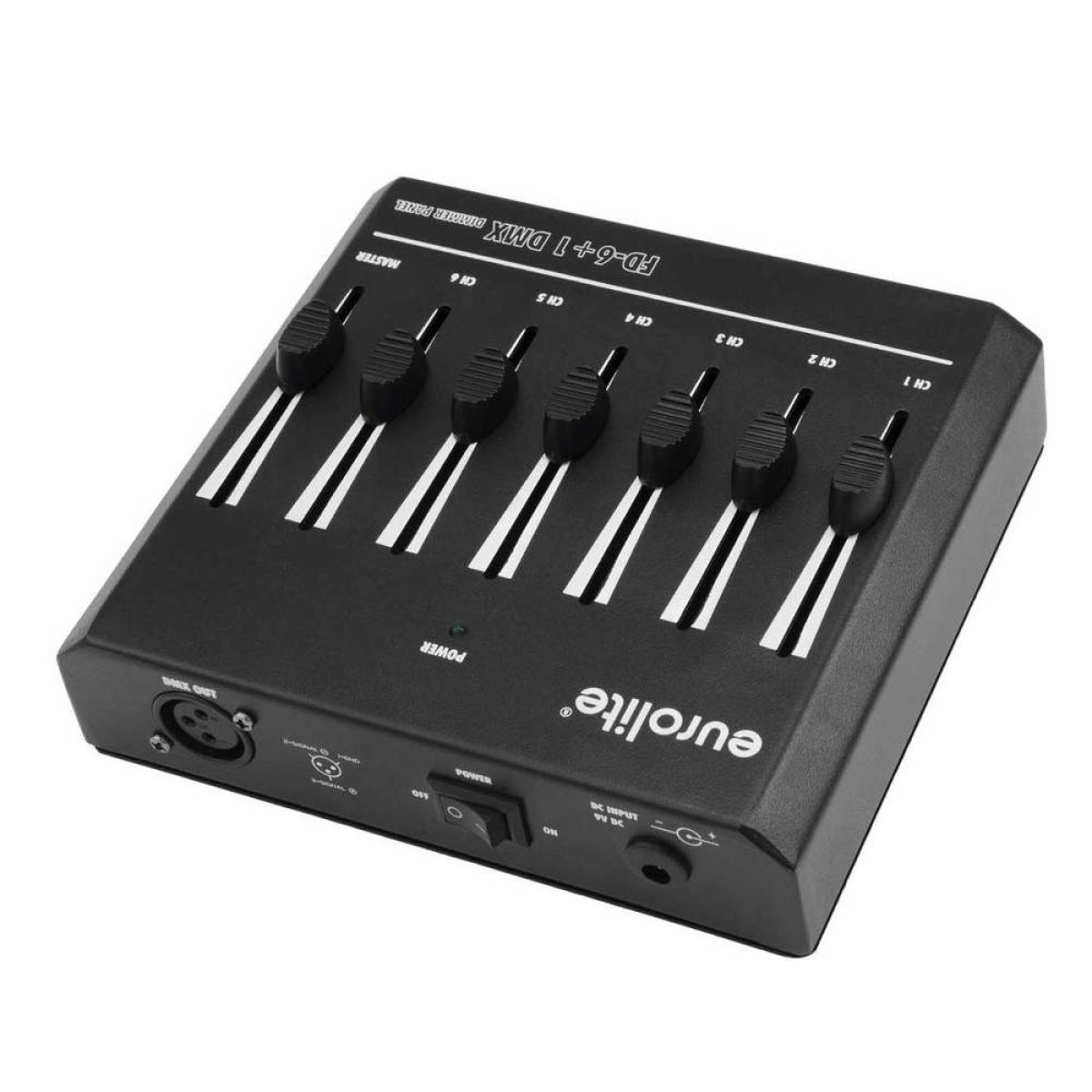 DMX Κονσόλα ελέγχου φωτιστικών 6 καναλίων με master fader, διαθέτει 3pin XLR connector, τροφοδοσία με εξωτερικό τροφοδοτικό που περιλαμβάνετε και 9V μπαταρία. (70063802)
