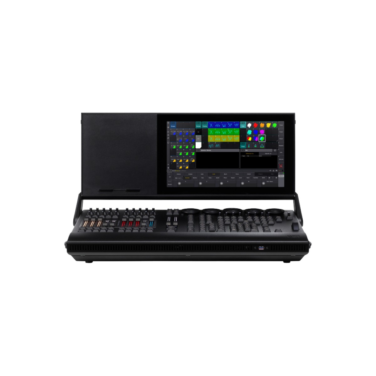 Κονσόλα φωτισμού με 8192 HTP/LTP-παράμετρους, διαθέτει 6x DMX outputs,1 DMX input onboard, ενώ έχει ικανότητα ελέγχου σε πραγματικό χρόνο έως 250.000 παραμέτρους, 1 αναδυπλούμενη οθόνη αφής υψηλής ανάλυσης, μπορεί να υποστηρίξει 1 εξωτερική οθόνη αφής 16", 10 υποφωτιζόμενα motorized faders, 29 περιστροφικά υποφωτιζόμενα RGB knob encoders,5 υποφωτιζόμενα διπλά encoders , 40 playback buttons, 16 αναθέσιμα xkeysr, 3 υποδοχές Ethercon, 5 USB υποδοχές, 2 motorized A/B faders 100mm, ανεξάρτητα υποφωτιζόμενα και dimmable silent keys, Διαστάσεις: 665 x435x165, βάρος: 17kg. Χρήσεις: Θέατρα / T.V. studio / live / P.A. (4010506)