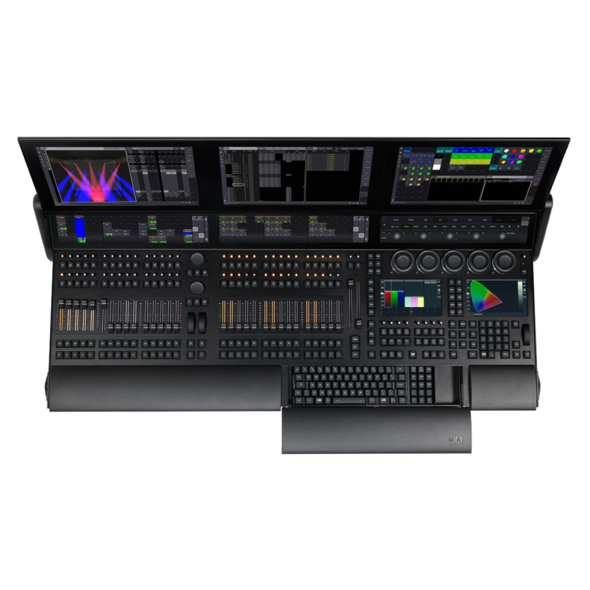 Κονσόλα φωτισμού grandMA3 full-size με 12.288 HTP/LTP-παραμέτρους (8,192 σε mode 2), διαθέτει 6x DMX outputs ,1 DMX input onboard, ενώ έχει ικανότητα ελέγχου σε πραγματικό χρόνο έως 250.000 παραμέτρους , 3 αναδυπλούμενες οθόνες αφής υψηλής ανάλυσης 16", 3 σταθέρες letterbox οθόνες αφής, 2 internal command οθόνες αφής, μπορεί να υποστηρίξει 2 εξωτερικές οθόνες αφής , 30 υποφωτιζόμενα motorized faders, 2 level wheels πολλαπλών χρήσεων, 2 encoders πολλαπλών χρήσεων, 71 περιστροφικά υποφωτιζόμενα RGB knob encoders, 5 υποφωτιζόμενα διπλά encoders, 120 playback buttons, 16 αναθέσιμα xkeys,ενσωματωμένο keyboard drawer, ενσωματωμένο UPS, 3 υποδοχές Ethercon, 6 USB υποδοχές, 2 motorized A/B faders 100mm, ανεξάρτητα υποφωτιζόμενα και dimmable silent keys. Διαστάσεις: 1,260x538x185mm. Βάρος: 43kg. Χρήσεις: Θέατρα / T.V. studio / live / P.A. (4010500)