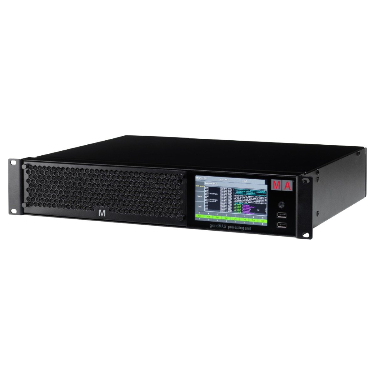 Tο grandMA3 processing unit M αποτελεί μονάδα επέκτασης του συστήματος ΜΑ3 με 4,096 HTP/LTP-παράμετρους, (σε MA2 συστήματα 4,096 παραμέτρους ), διαθέτει 8 DMX εξόδους. Οι ρυθμίσεις γίνονται μέσω μίας οθόνης αφής. Διαστάσεις:482 x 350 x 89mm. Βάρος: 6kg. (4010510)
